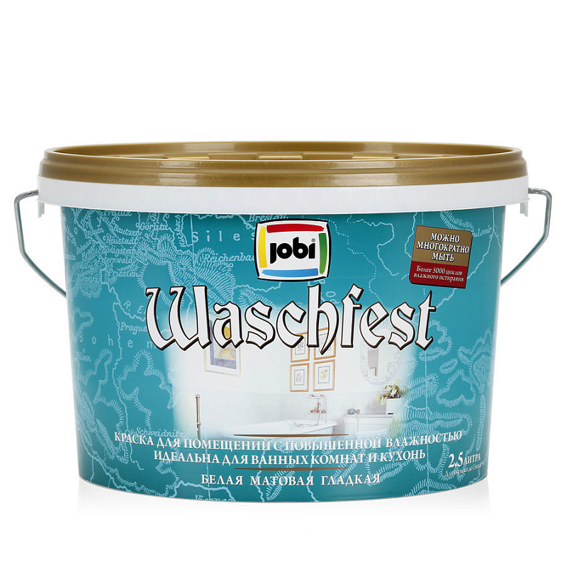 Матовая моющаяся акриловая краска для стен и потолков в помещениях с повышенной влажностью. Образует поверхность с высокой стойкостью к загрязнению, истиранию и влажности, ее можно многократно мыть с применением неабразивных бытовых моющих средств. Краска обладает высокой степенью белизны и укрывистости.