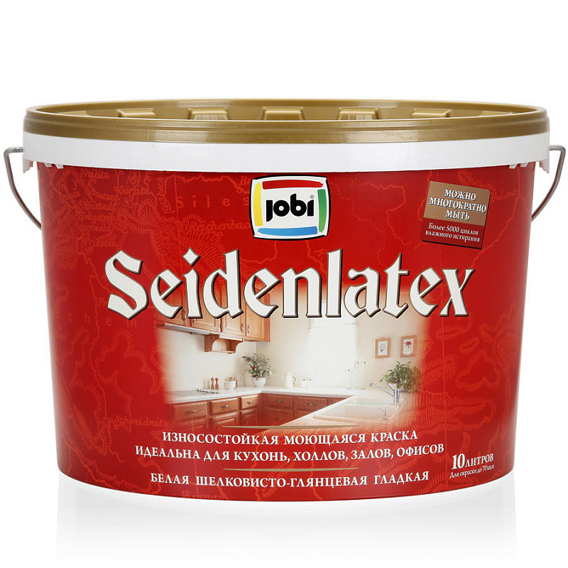 Шелковисто-глянцевая износостойкая латексная краска для потолков и стен в интенсивно эксплуатируемых помещениях. Образует поверхность с очень высокой стойкостью к истиранию и влажности, ее можно многократно мыть с применением неабразивных бытовых моющих средств. Краска обладает высокой степенью белизны и укрывистости. Сделана на основе современных сырьевых компонентов компании BASF.