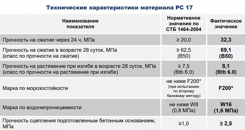 РС 17 - безусадочная сухая смесь для приготовления быстротвердеющего раствора, применяющегося при ремонте цементобетонных дорожных и аэродромных покрытий, мостового ездового полотна, парковочных зон.