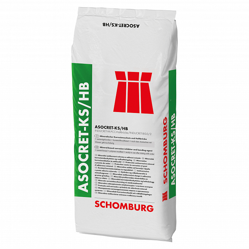ASOCRET-KS/HB применяется как антикоррозионная защита стальной арматуры при ремонте бетонных конструкций и одновременно как адгезионное средство на бетонных основаниях и между подстилочным клеем и брусчаткой. ASOCRET-KS/HB является частью системы ремонта бетона, включающей ремонтный раствор ASOCRET-BIS-5/40, а также систем INDU-Monolith и INDU-Drain.
