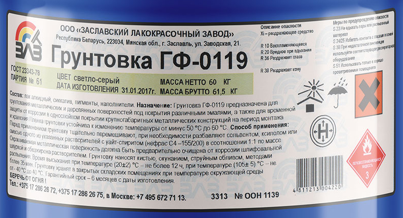 | Рекомендуемые системы покрытия | - грунтовка ГФ-0119 - 1 слой - эмаль ХВ-16 универсальная - 3 слоя |