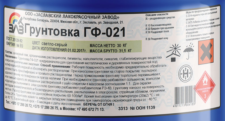 Наносится на предварительно очищенную от пыли, грязи, масел, окалины, признаков коррозии механическим способом очитки, обеспыленную и обезжиренную (уайт-спиритом) поверхность методом пневматического, безвоздушного распыления, или кистью. Перед применением грунтовку разбавляют до рабочей вязкости 22-24с по вискозиметру ВЗ-4 с диаметром сопла 4 мм ксилолом или сольвентом, но не более 10-15%.