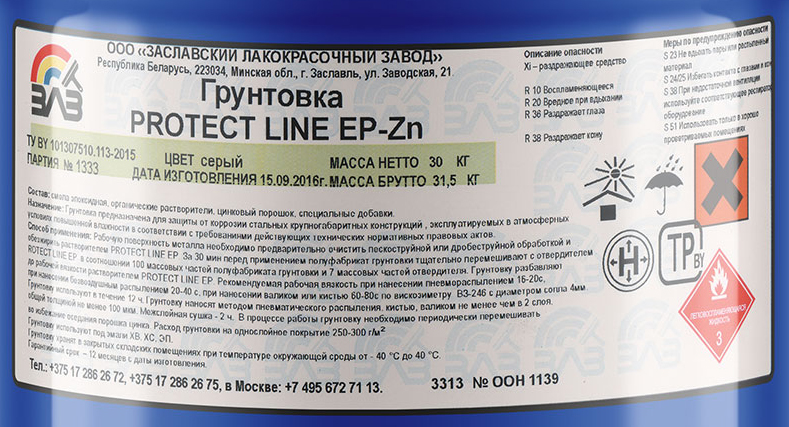 - полуфабрикат грунтовки «PROTECT LINE EP-Zn» - отвердитель «PROTECT LINE E» |