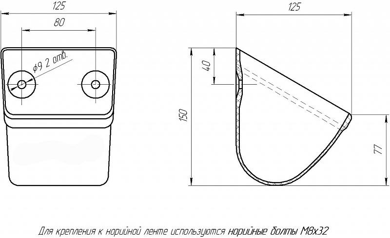 Болт норийный М8х32 - 2 шт., Гайка М8 - 4 шт., Шайба плоская увеличенная - 2 шт. |
