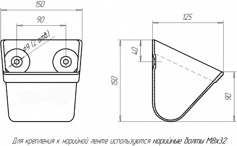 Болт норийный М8х32 - 2 шт., Гайка М8 - 4 шт., Шайба плоская увеличенная - 2 шт. |