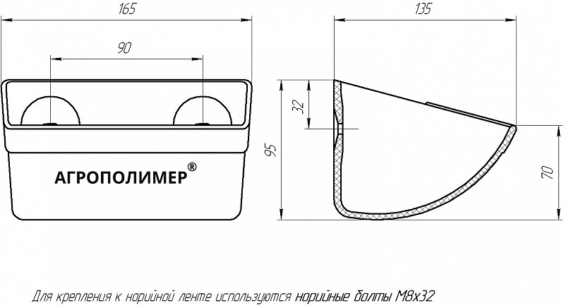 Болт норийный М8х32 - 2 шт., Гайка М8 - 4 шт., Шайба плоская увеличенная - 2 шт. |
