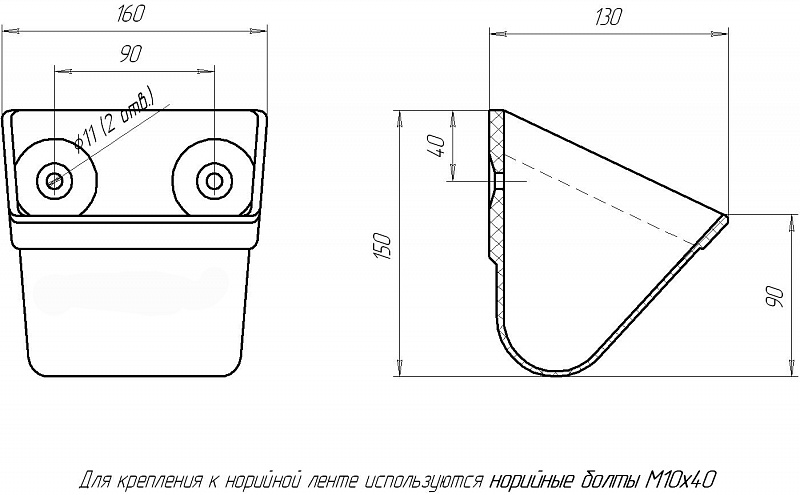 Болт норийный М10х40 - 2 шт., Гайка М10 - 4 шт., Шайба плоская увеличенная - 2 шт. |