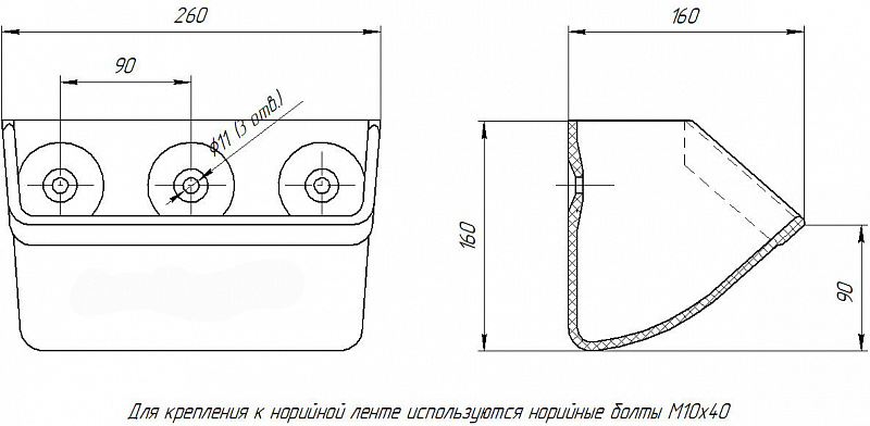 Геометрические размеры ковшей норийных полимерных соответствуют размерам металлических ковшей типа УКЗ, что позволяет быстро производить замену металлических ковшей на полимерные.