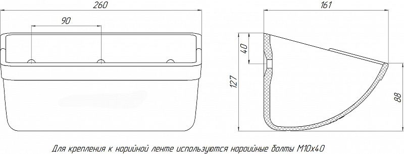 Геометрические размеры ковшей норийных полимерных соответствуют размерам металлических ковшей типа УКЗ, что позволяет быстро производить замену металлических ковшей на полимерные.
